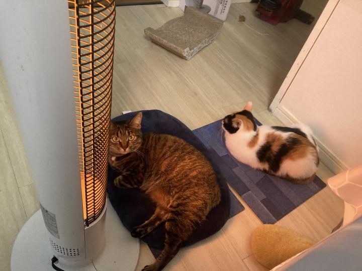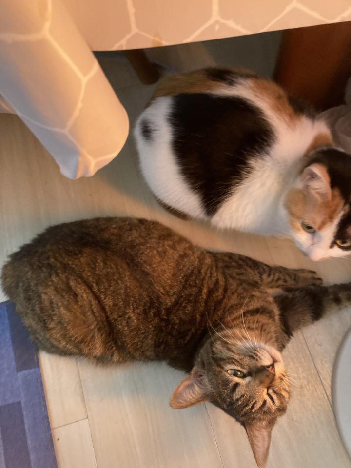 生後3か月でうちに来た三毛猫のあんずちゃんと一歳代でネコジルシのご縁でトライアルから我が家の家族になったキジの女の子のかりんちゃん(愛称ちーちゃん)、お転婆あんずちゃんと穏やかなかりんちゃん。まだお互...