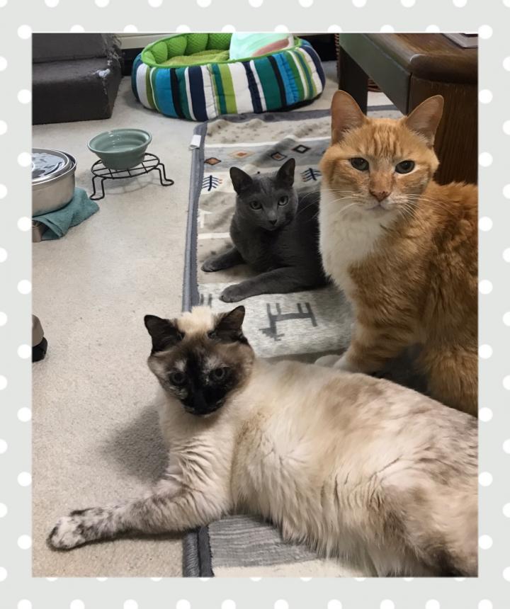 ホカぺでぬくぬくしていた3ニャンに声をかけたらこっちを向いてくれました😄