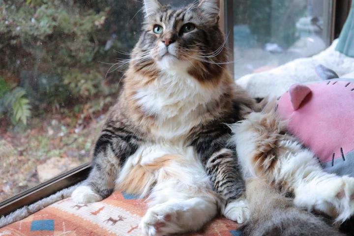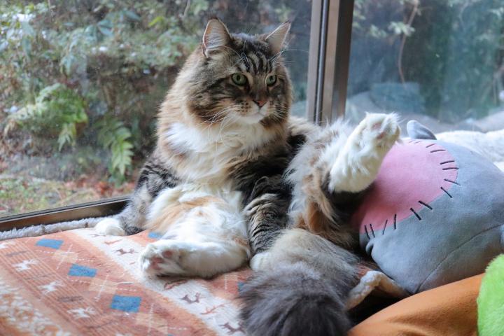 時々「なんで私らは毎日ノルを膝の上に乗せて夕ご飯食べてるんだろうねヾ(@^▽^@)ノ わはは」と云ってますよ