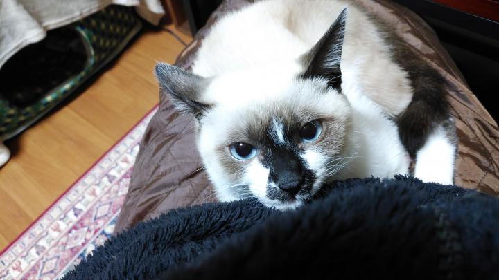 今は落ち着いて膝の上でゆったりしてくれていますが、お世話係の方が心配でぐったりしています