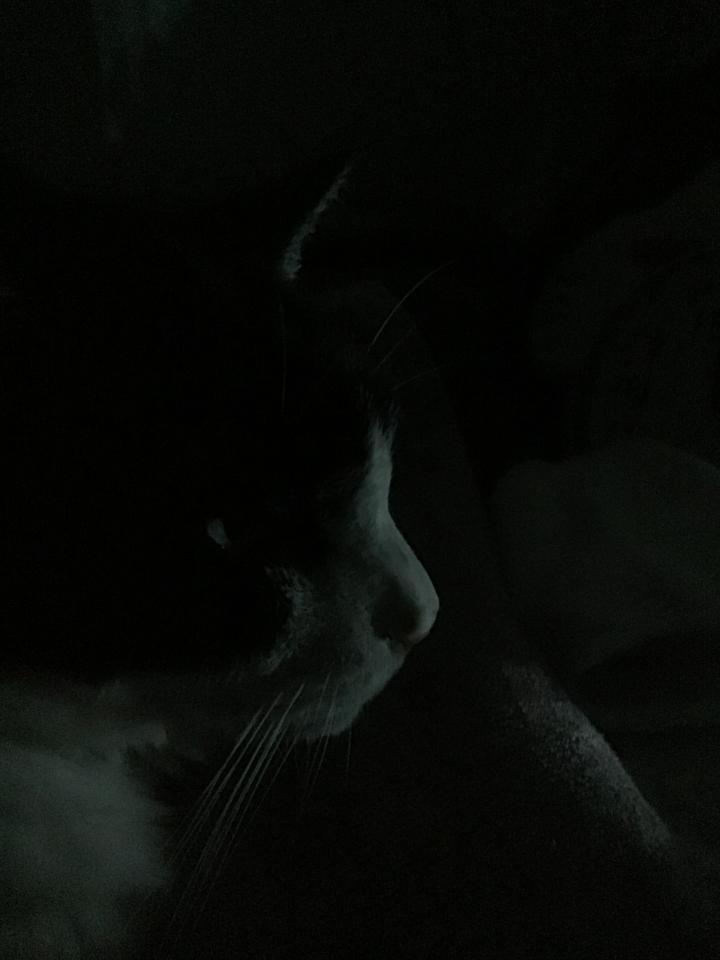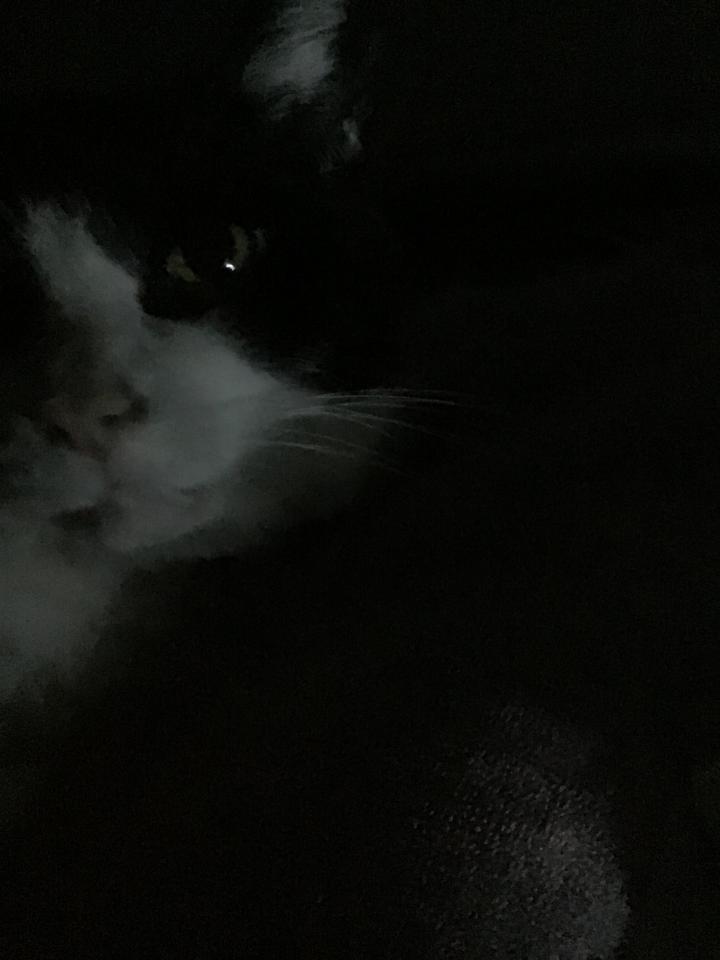 寝る前なので部屋の明かりは消していて、そのため白黒の白い部分しか見えない。