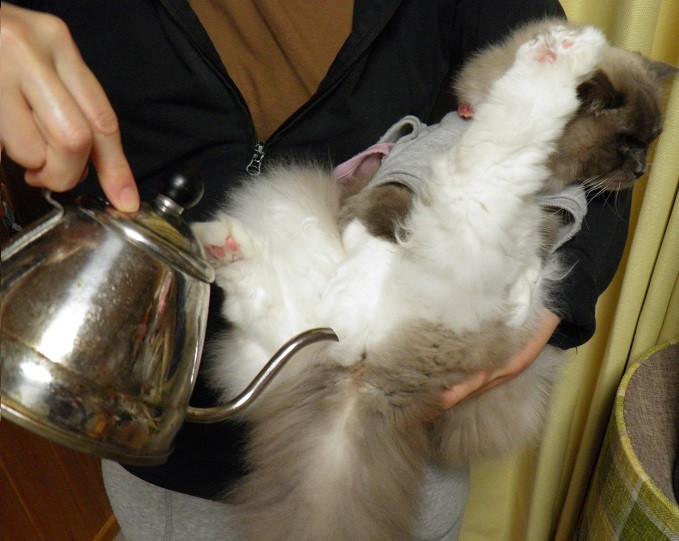 給湯器のお湯を38℃設定し、ケトルにお湯をいれます。