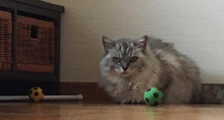 「今日も一人サッカー⚽️とっても楽しいニャ〜」