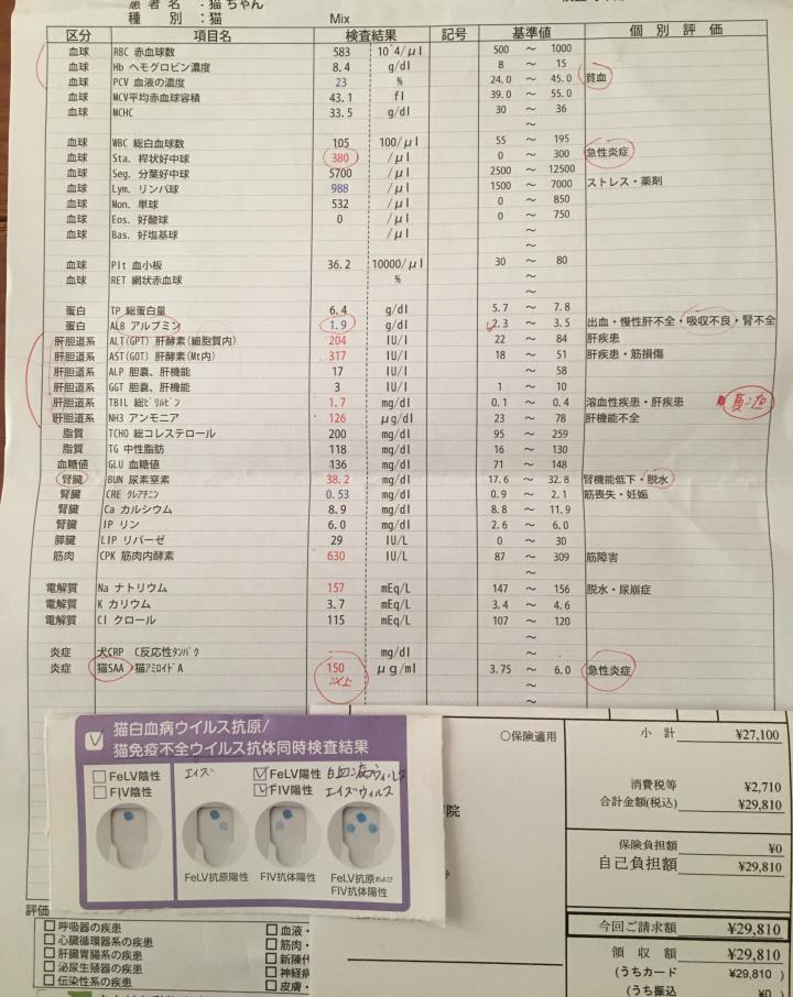 炎症の値が普通は6以下だそうですが、測りきれない150以上で、状態が悪くこのまま亡くなるかもしれないそうですが(死んだと思っていたぐらいなので)たとえ死んでしまっても最後はひとりぼっちで苦しまないでほしい。今できること、点滴と抗生剤を打ってもらいました。