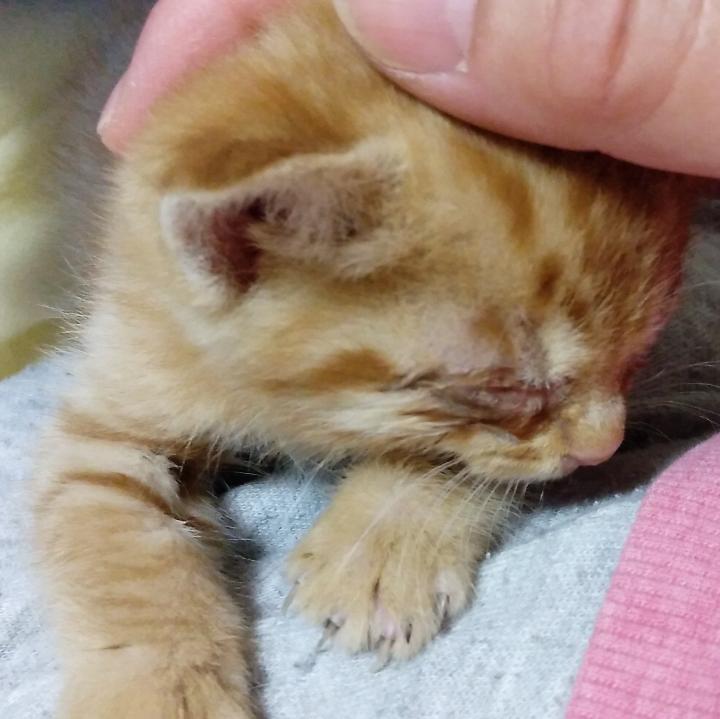 自宅にわりと近くの道路で、仔猫がうずくまっていました。