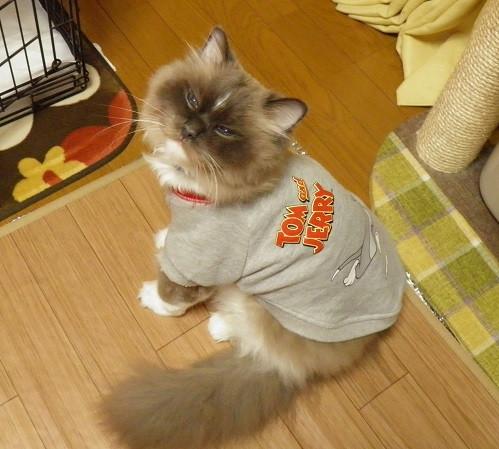 早朝はまだ11℃、肌寒いのでお洋服を着てもらっています。