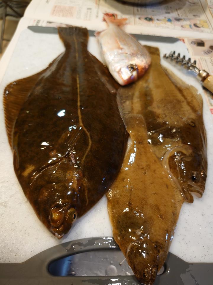 40センチ近いマコガレイ、30センチのミズガレイ、小鯛、針を飲み込んでリリース出来なかった小カレイ…