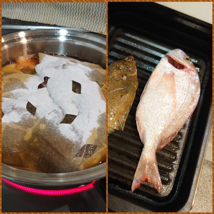 早朝4時起きで、帰宅したら道具を洗ったり、魚を捌いてからの調理になりますのでレシピは大雑把で簡単仕様です。