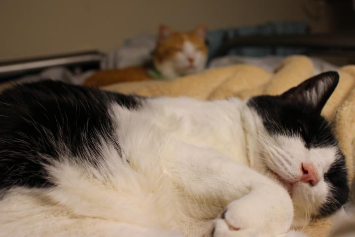 なお、うちの姫さまが「うちの子」になったあとにお嬢(白黒ハチワレのメス)と坊ちゃん(茶白のオス)と後輩が2にゃん加わったのですが、喧嘩は一切しませんでした。「最初のおうちで先住猫と激しく喧嘩した」というのはやはりうちの子になるための策だったようです。