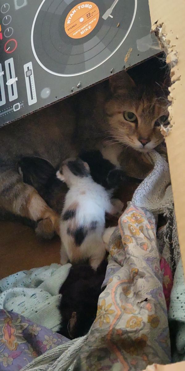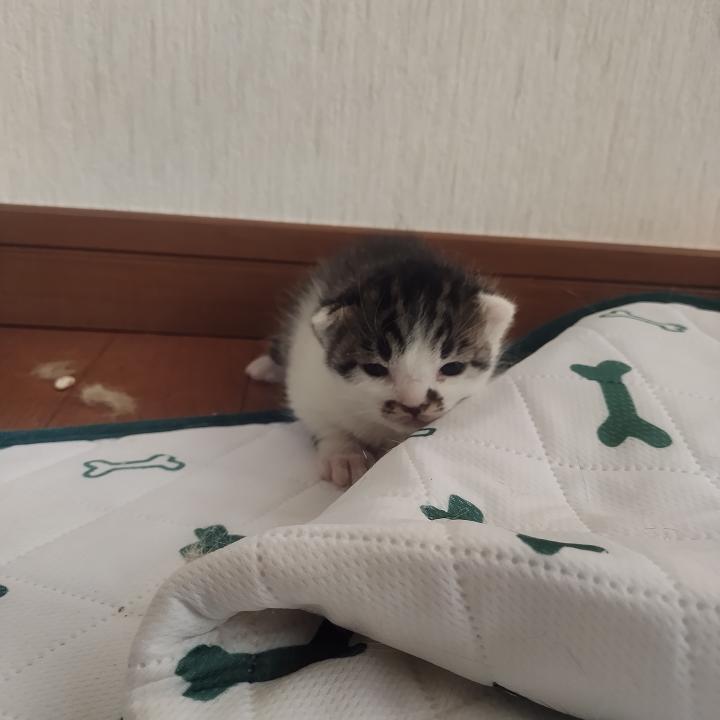 耳が立ち、足も立ち、小走り、チュール、トイレができるようになりました。 子猫同士の取っ組み合いはしますが、おもちゃはまだ遊べません。 美人で若いお母さんは、じゃらし大好きです。 ...