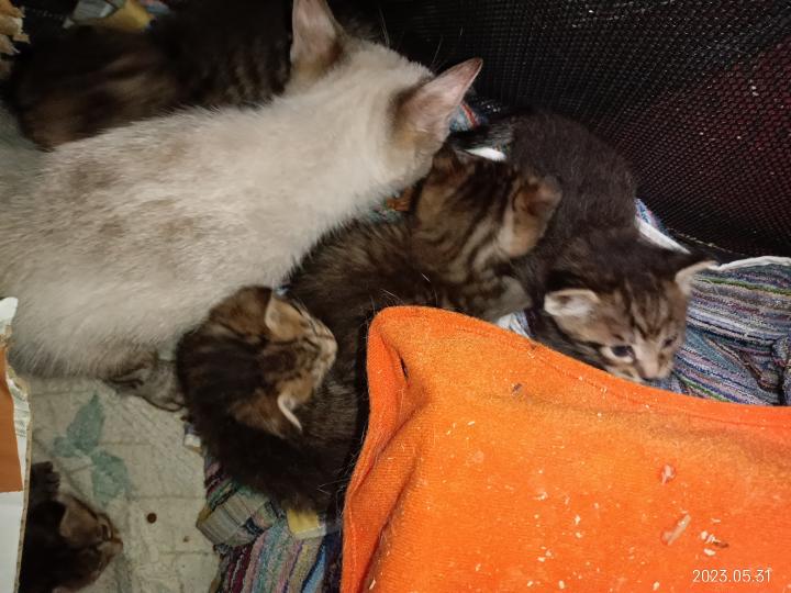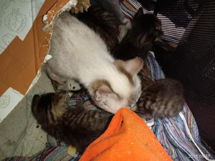 ママねえの美人ママ 白ミケのばあちゃんを子供達とママ姉とで眺めています(;_;)