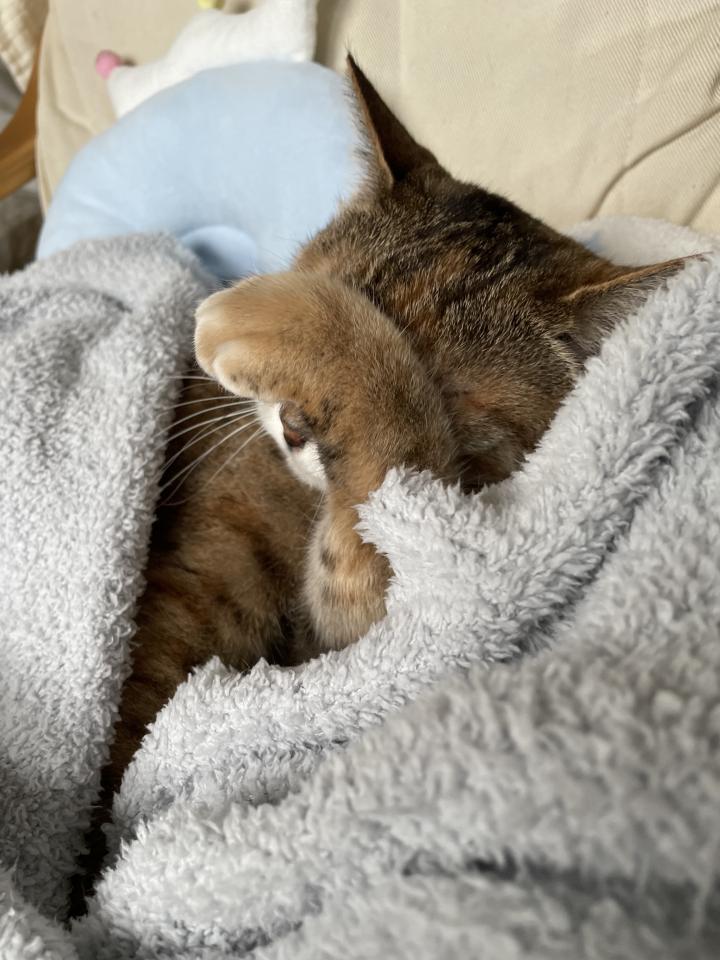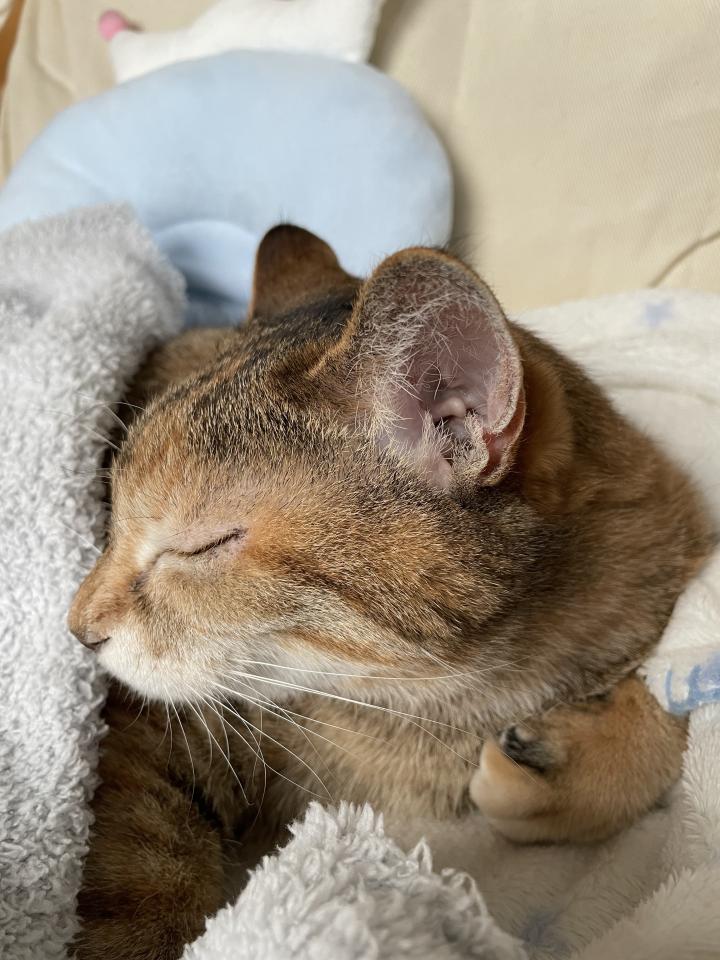 丁寧な毛繕いの後、寝てしまったにゃち。