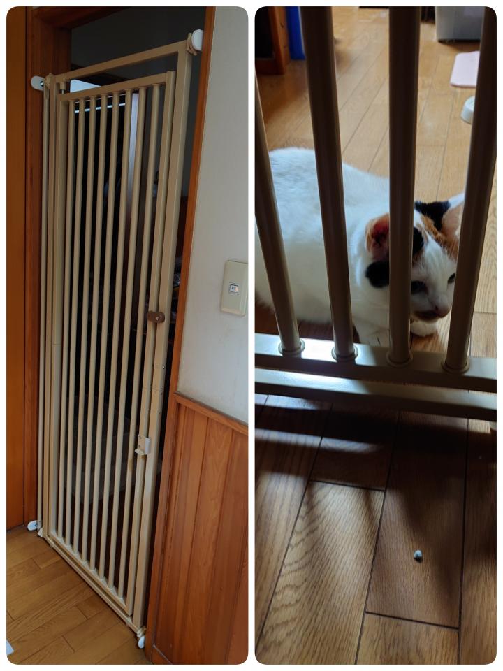 暑くなってきてまめがお一人様してる寝室もドアを締め切りだと風通しが悪いのでキャットゲートを新たに設置してみました‼️