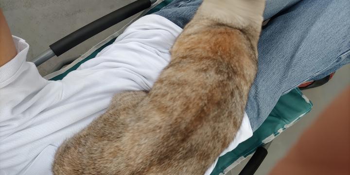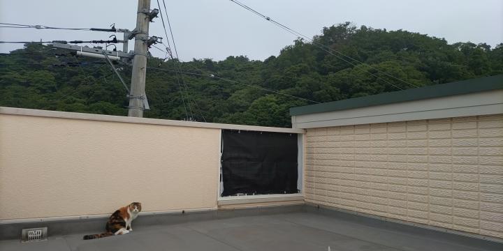 最近、さよちゃんが頻繁に「お外に行こうよ」と催促し、屋上の出口で待ってて来ないと、滅多に鳴かないのに大声で「ニャーニャー」いいながらリビングに抗議してくるので、仕事が終わって帰ってきた朝に、屋上でお酒飲みながら裏山を見るのが日課になっています。
