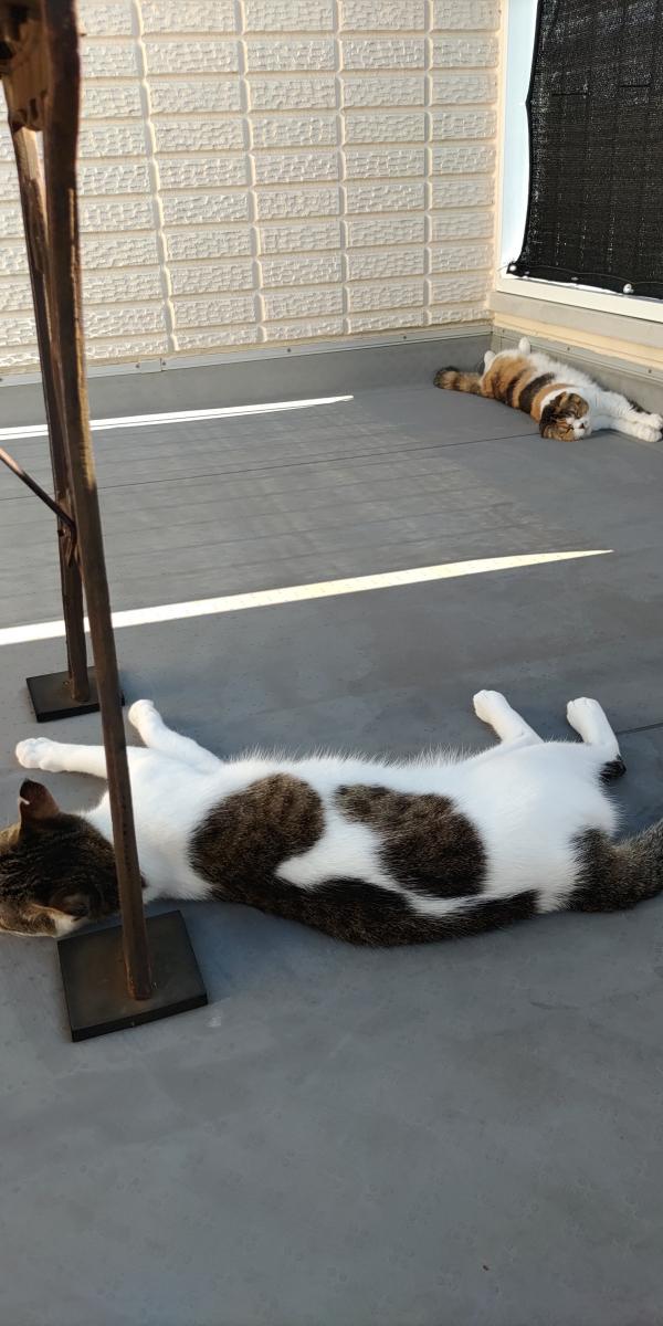 朝の日光浴に、ベランダに来たのですが、時既に遅し。