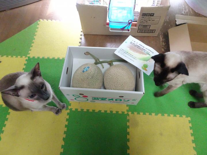 ルビィ😻「今年も メロン🍈が 届いたんだー・・・母ちゃん、ダンスとズンバ、サボって家に居て良かったね(*^-^*)」