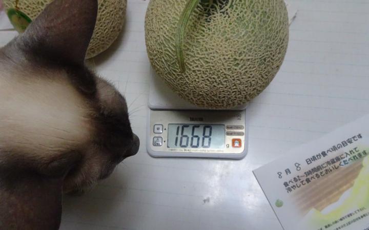 福ちゃん😼「母ちゃんたち 今朝は 桃を食べてたわよね~🍑 メロン🍈は 食べごろが8日でしょ~? 楽しみね~(^^♪」