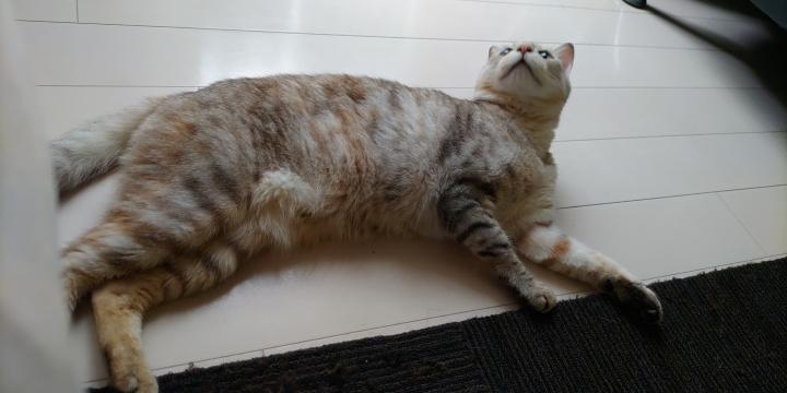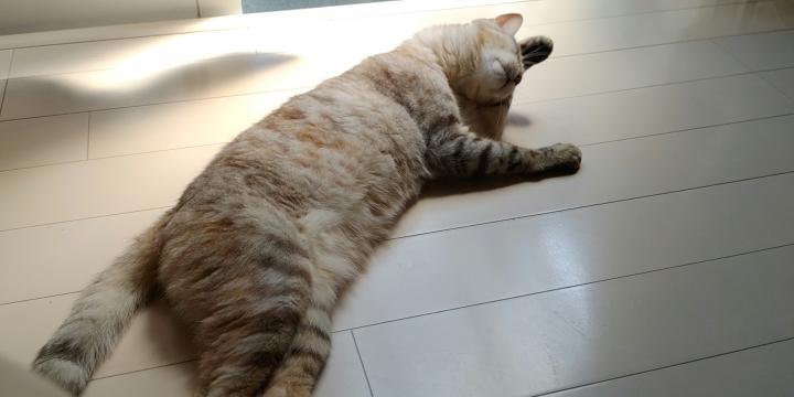 むーちゃん「もう~、あちぃ~にゃあ。」