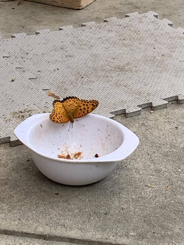 お皿にとまってる👀