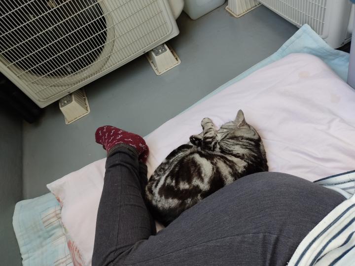 ベランダにお布団敷いてにゃんこ達とお昼寝♡