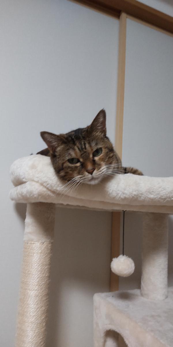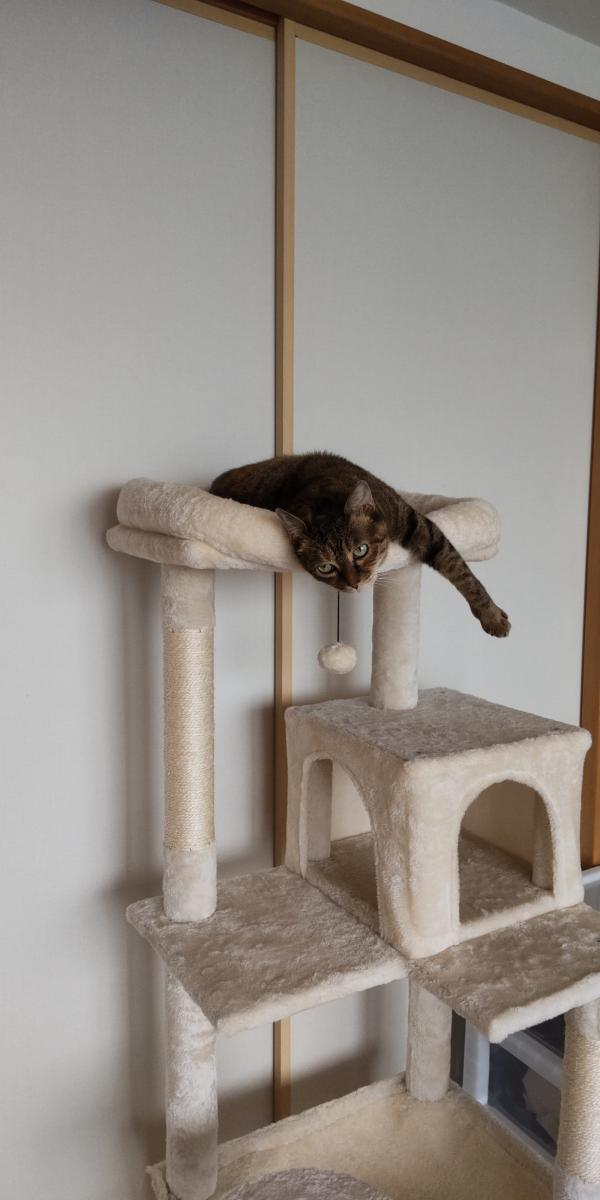 キャットタワーも一部はみ出てるし、いつか落ちそうだとハラハラしてるんですけど?