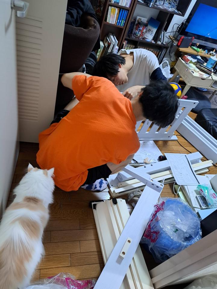 お兄ちゃんの部屋の家具の制作にみんなで乱入の図