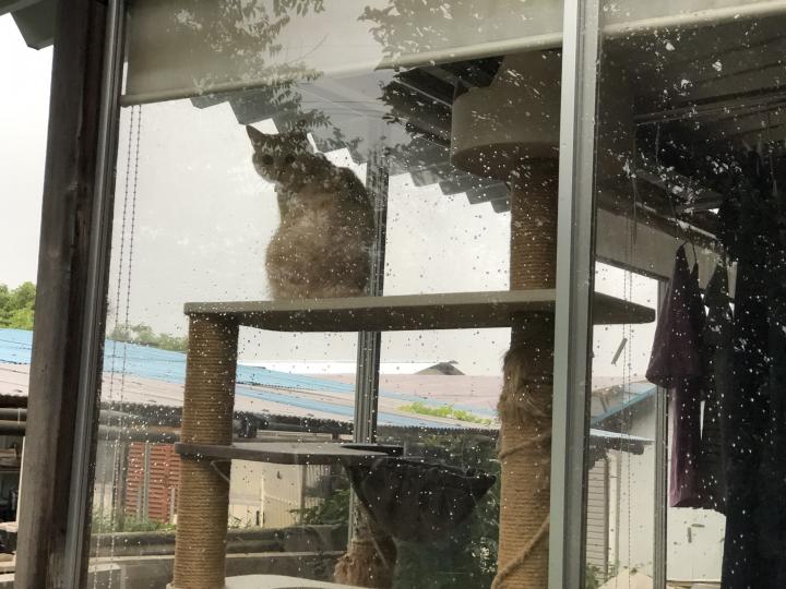 アタシは、雨でも晴れでもあんまり変わらにゃい。