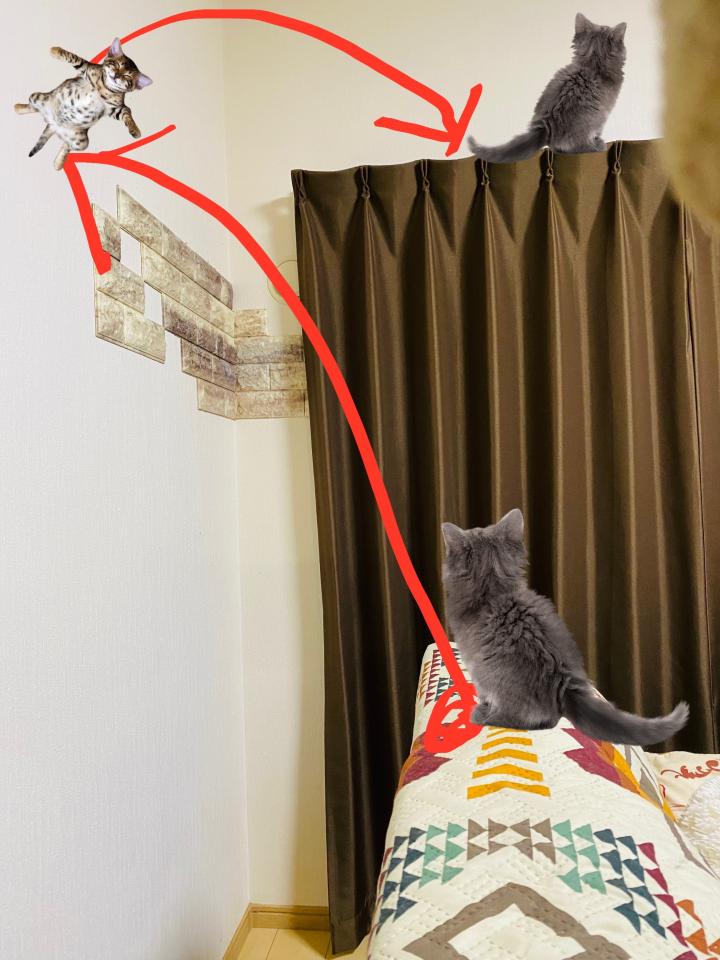 そして壁を思いっきり蹴ってカーテンレールに登る…キララ🤣