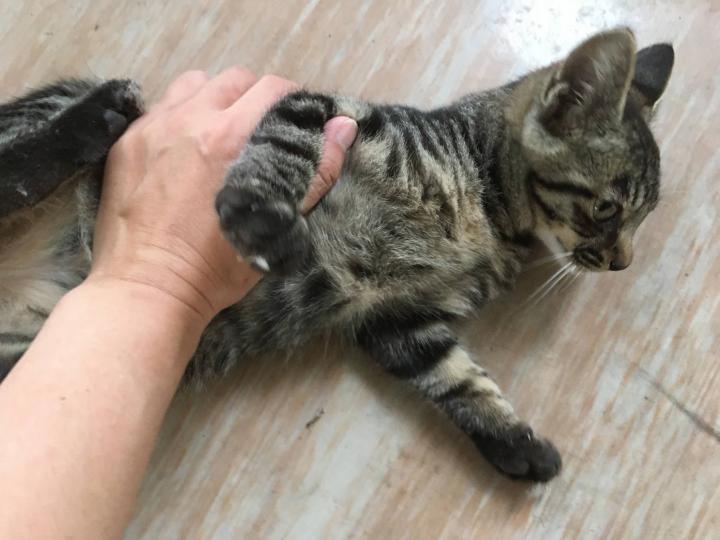 9月19日火曜日、小学校前を通りかかったらお隣の建物前に佇んでる子猫がいる。