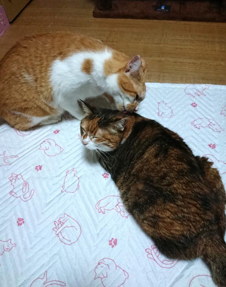 シナモンが優しく、ももをグルーミング〜