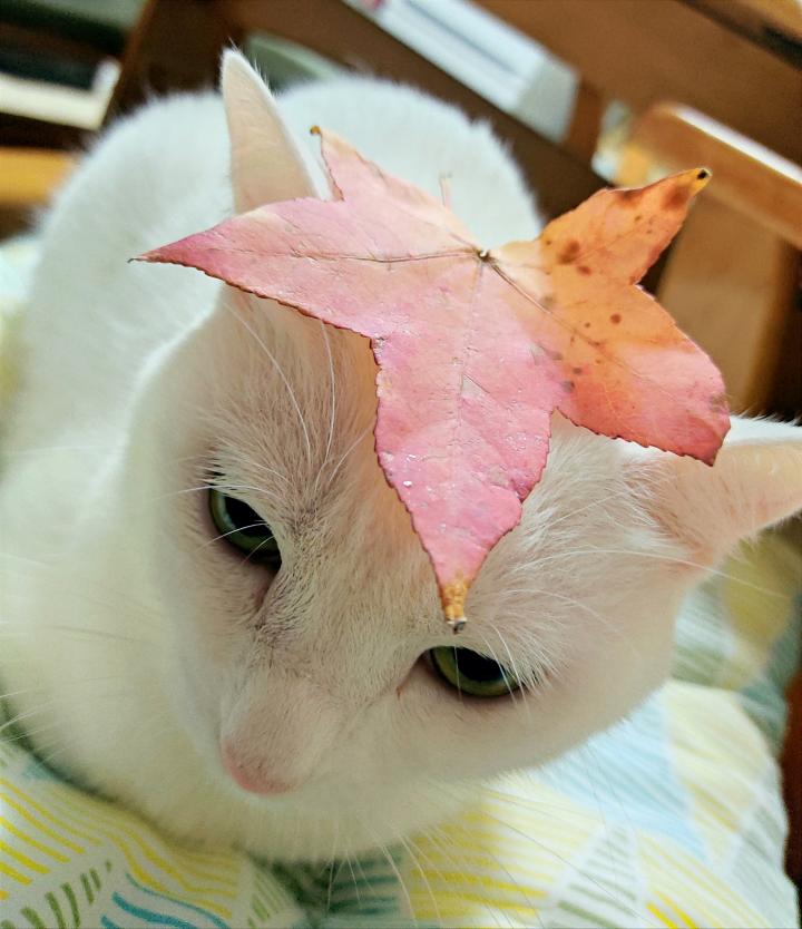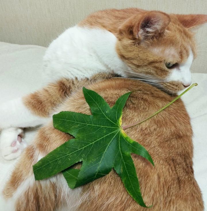 ・・・頭にまで葉っぱ乗せられたにゃ!byココ