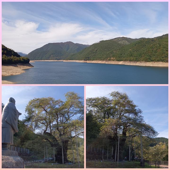 ダム湖も秋の青空の色が映って、美しい青…自然の景色に癒されて来ました