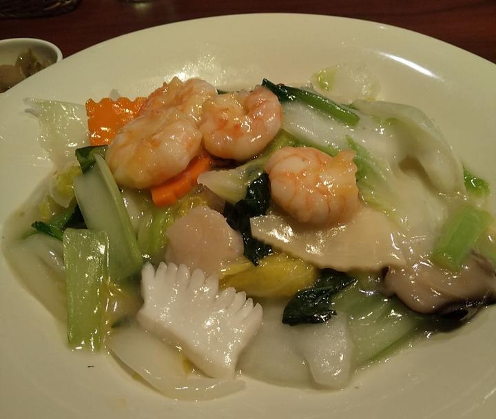 伊勢丹の南国酒家で海鮮焼きそばのセット。
