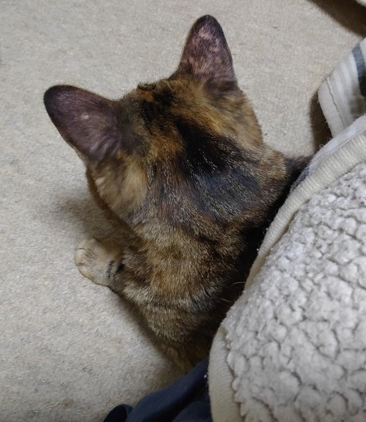 炬燵からちょっとだけ出てるれーゆん。ちょこんと置いた手が可愛いです😺