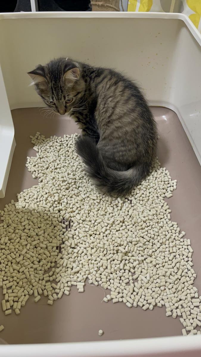 トイレはペレットタイプらしいので、先日いただいた大型猫様用を専属利用。