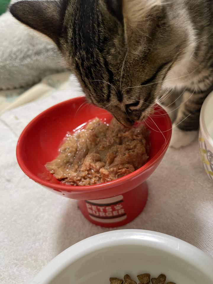 お食事がカリカリには目をくれずにウェットに走る男子。