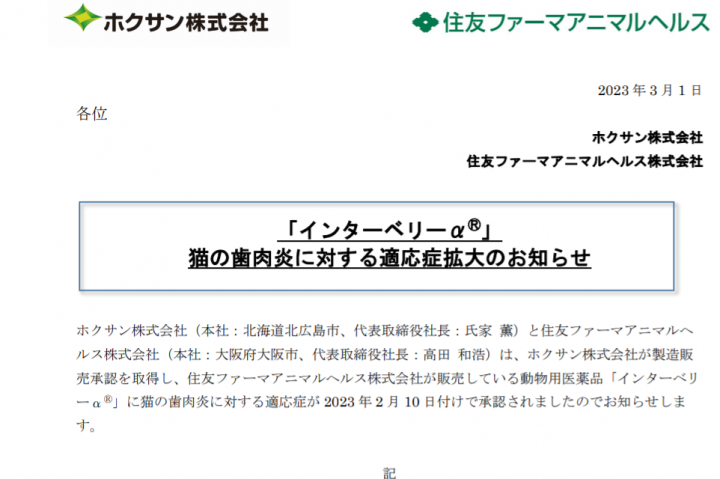 承認されましたって、だれが承認したのかと思ったら、動物用医薬品の承認は農林水産省が行うらしい。