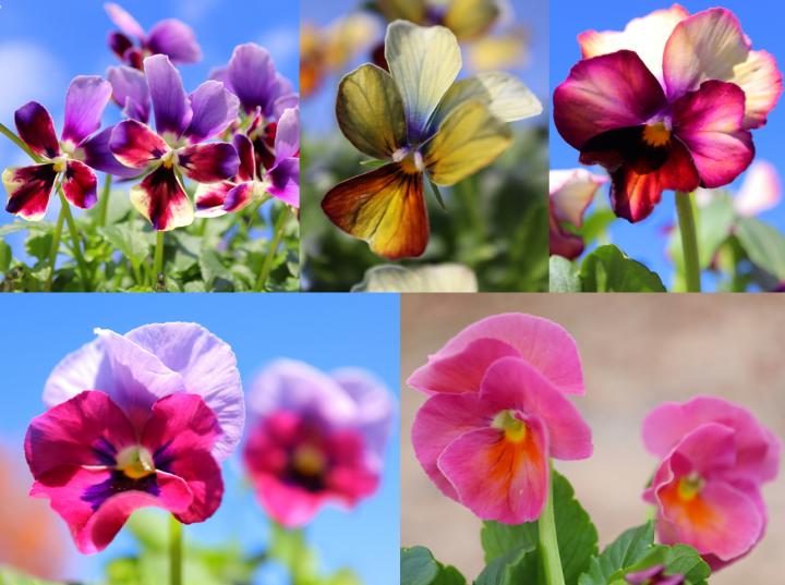 右下:花苗うえたさんのビオラ(「うえたフラワーコレクション」の名札)