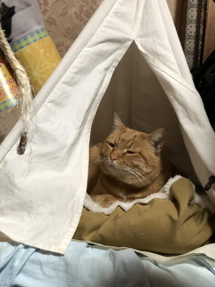 白は今、夜勤に備えて事務所のホカペでお昼寝中〜