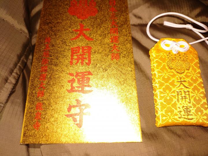 色々と願い事があった俺には、大開運守が良いでしょうとの事で手に取ってから「色が何色かありますが、ご希望は?」って言われたけど、既に手に持ってたし、これでいいやと持ち帰ったのが黄色でした。