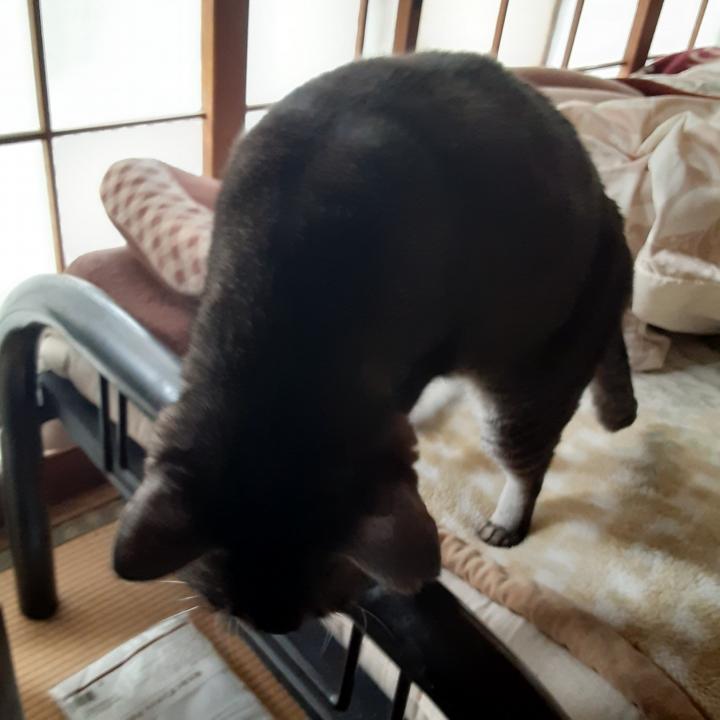 最近、夜中に腹が減ると 私の頭を パシツ パシツ と2回叩くのです💦😿