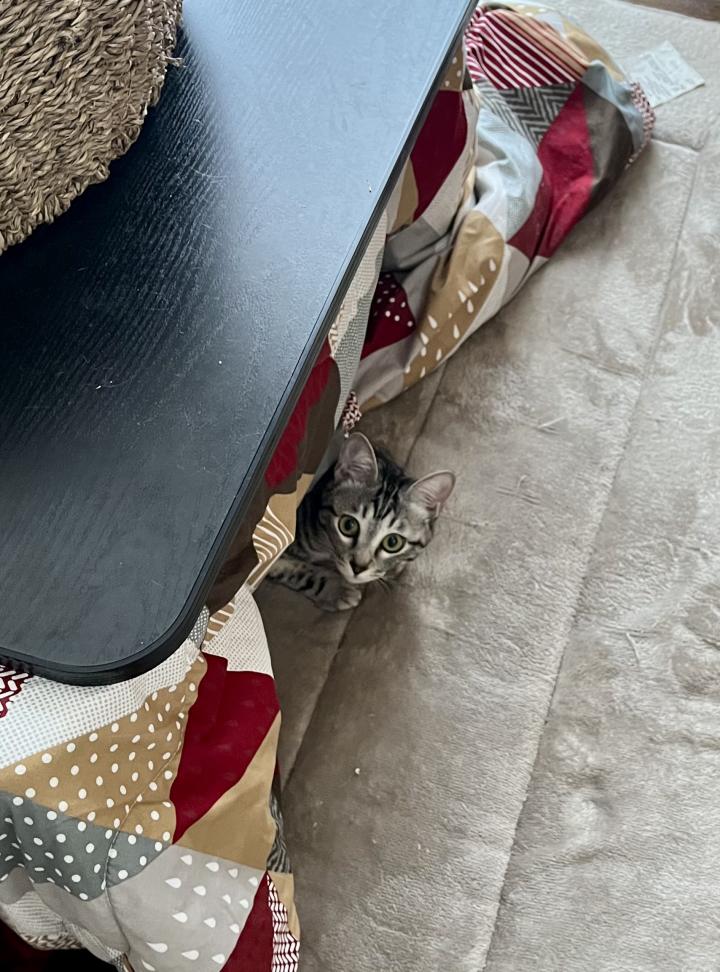 ふと見ると、すずが珍しくコタツに入ってった…?よく見ると…