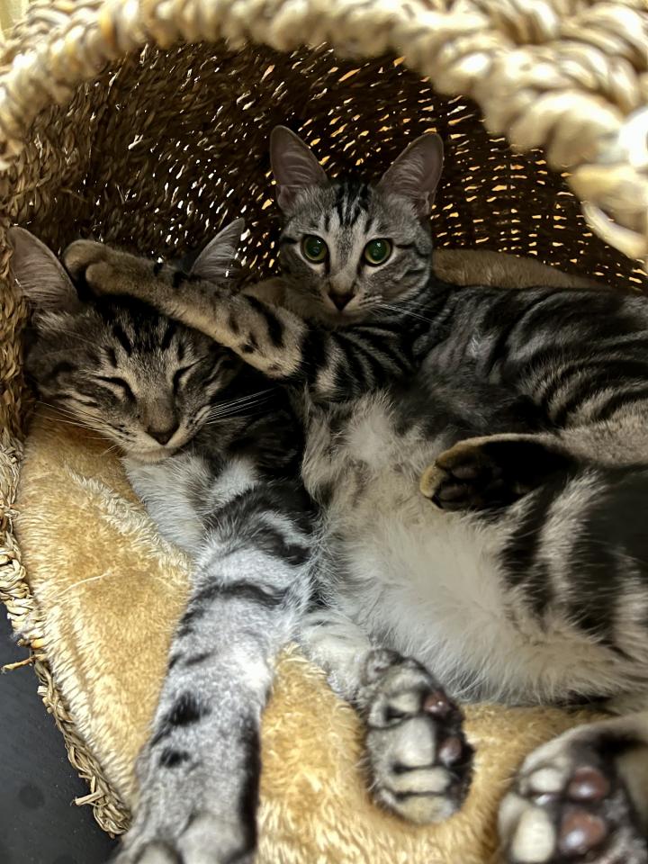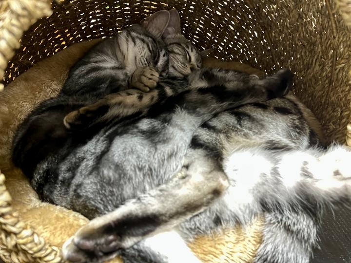 いつもこんな感じでちぐらで寝てます。(この写真、88歳の父には三匹に見えるそう😆)