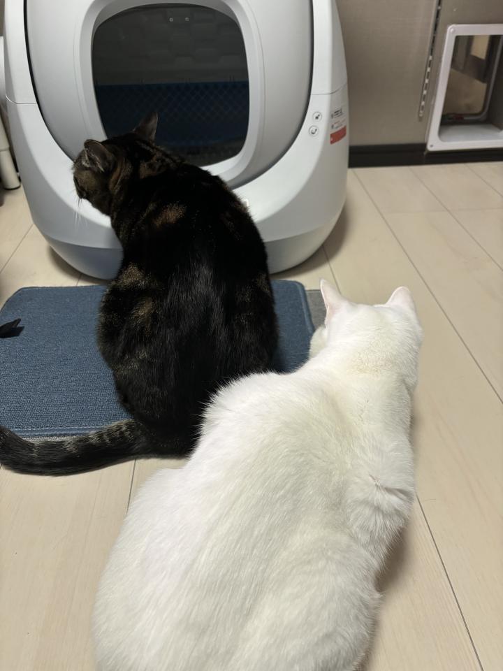 夜もトイレが動き出すと必ずお二人とも見にきます。