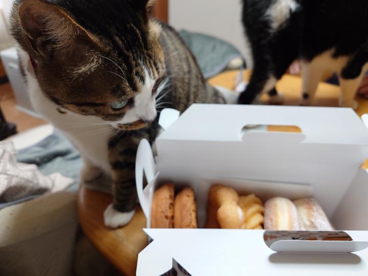 自分のものは200円のドーナツでもなかなか決まらないのに、猫のものとなると「この爪とぎは遊びそう!」「このごはん入れはよく食べそうだし、掃除も楽そう」と、即決。