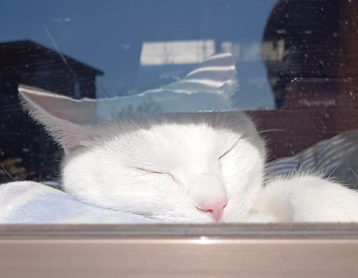 昨日は春の陽射しを浴びてもっちーが寝ておりました