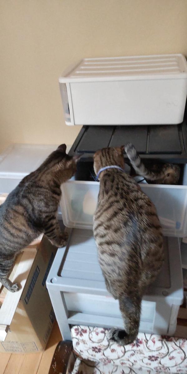 今は衣装ケースの中に、おもちゃを入れてますが、この子達は未だにこのケースが好きみたいです。