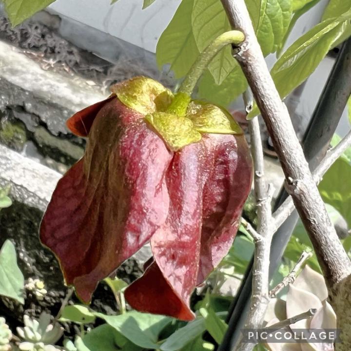 茶色の釣鐘状の見慣れない花です。