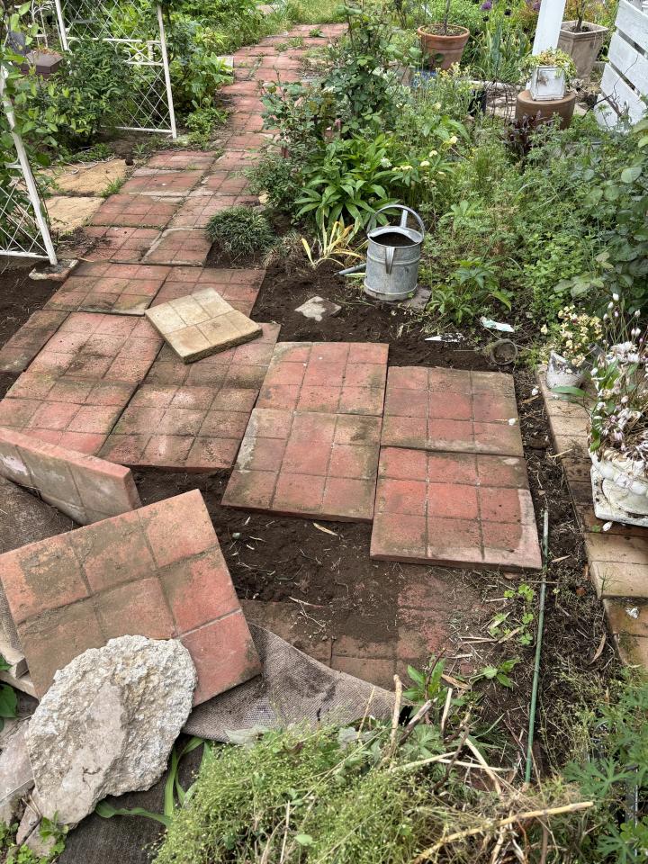 のんびりと草むしりを始めたはずなのに、コンクリート板の隙間が気になり、持ち上げてみたら篠が生えてるが気になり〜