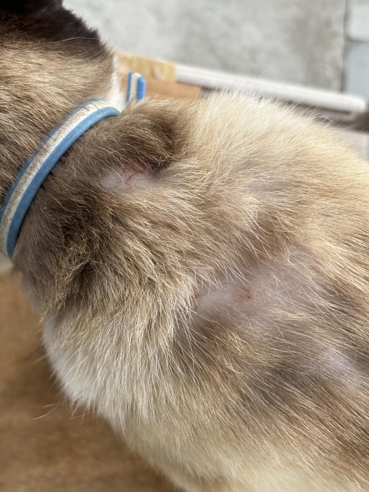 白さん、背中が禿げてる!と思ったら傷だらけ。
